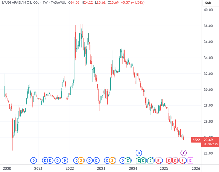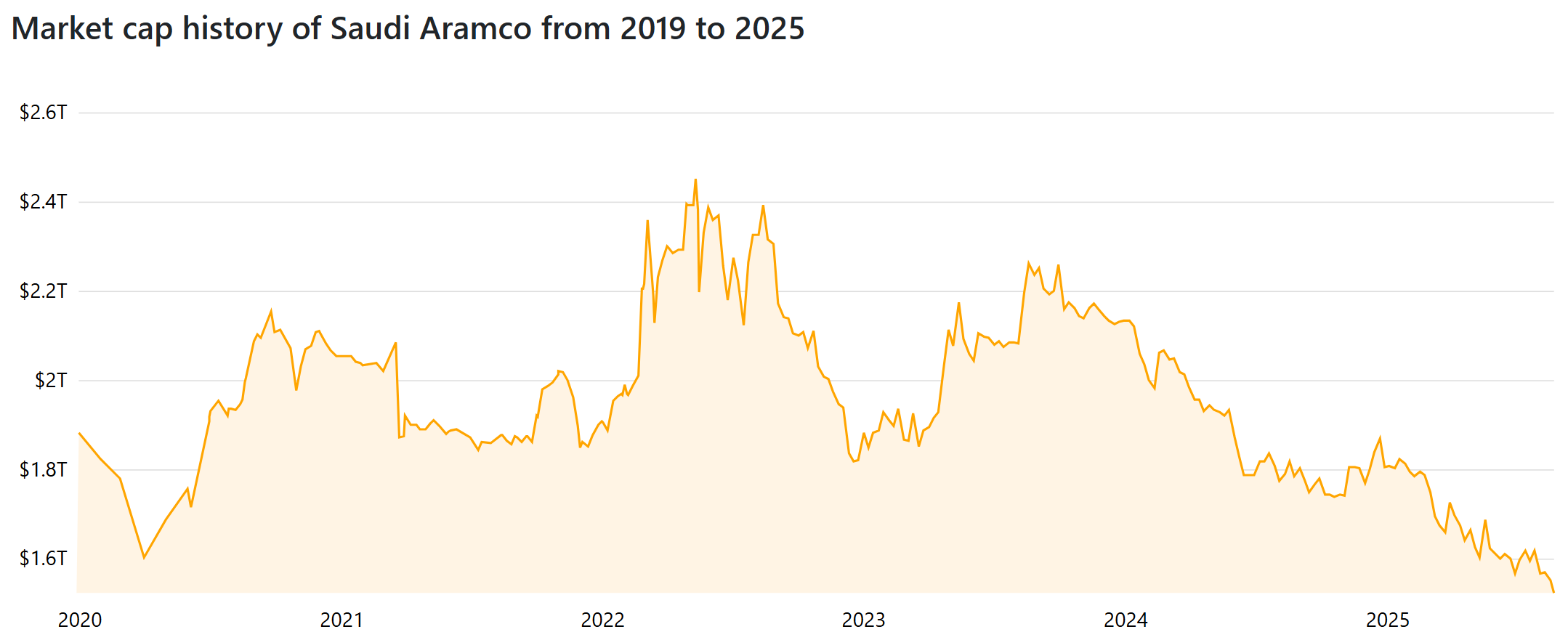 沙特阿美周四继续创出年内新低,2025年的整体跌幅已经拉大到15%。