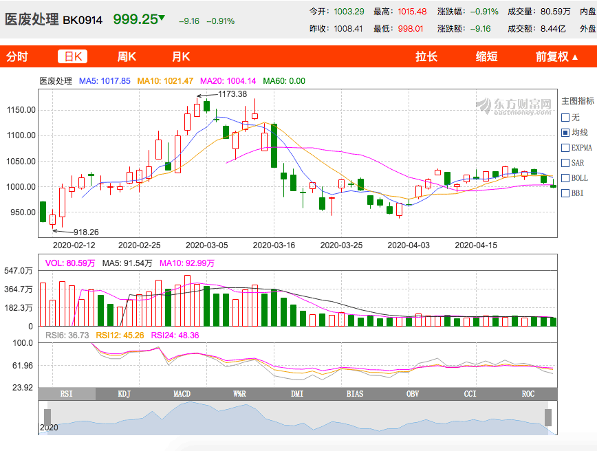 医废处理板块走势 图片来源:东方财富