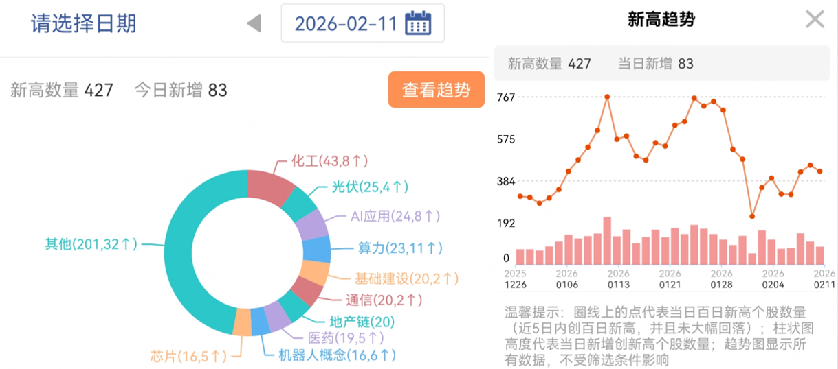 从百日新高去看,板块新高数量前4:化工>光伏>Ai应用>算力