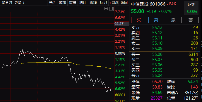 中信建投和中信证券午后急速跳水,带动大盘情绪走弱。截至收盘,中信建投狂跌7%,中信证券大跌5.72%,券商板块整体跌幅超过3%。那么,究竟是什么原因导致了早盘还略显强势的中国神券杀跌呢?一则来自南华早报的消息称,将允许华尔街的交易公司在中国拥有独家经纪业务。市场可能认为,这则消息或将冲击到经纪业务占大头的券商行业。
