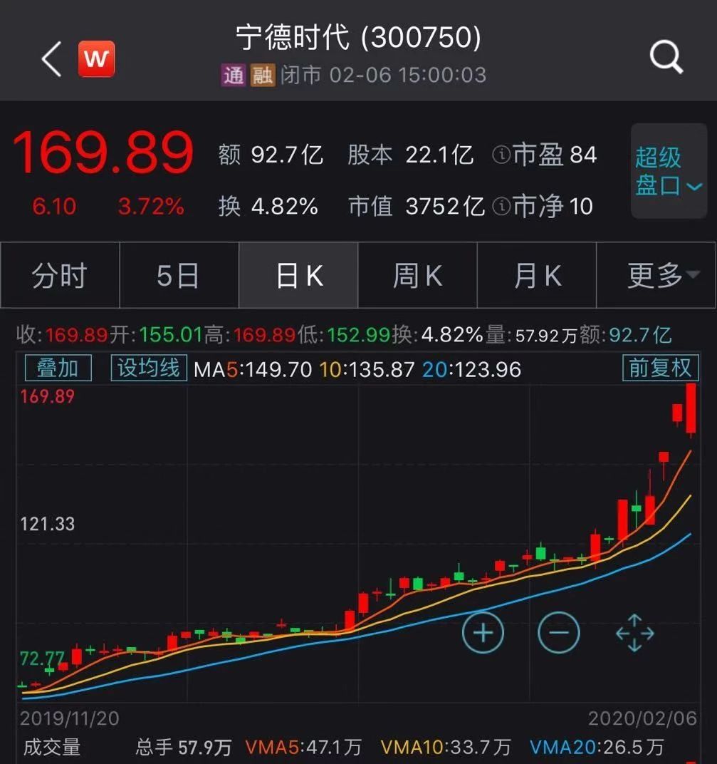 作为全球锂电池龙头,宁德时代农历新年开市第一日就上演反转剧情,逆势大涨3.67%,接下来两个交易日连续录得两个涨停,短短四个交易日,宁德时代股价已暴涨逾30%。截至今日盘后,报169.89元/股,总市值已高达3751.85亿元。