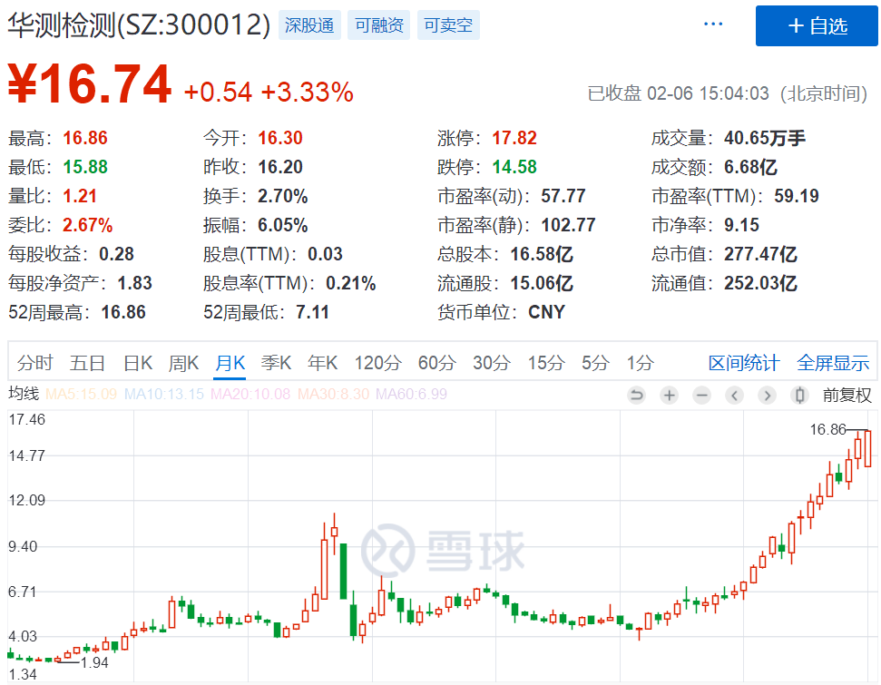 而在外资凶猛的买盘推动下,自2018年2月至今,华测检测的股价迭创新高,累计涨幅高达380%。