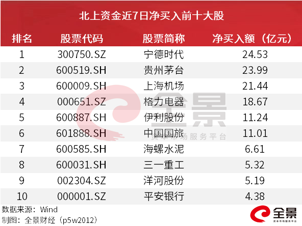 而格力电器、贵州茅台、伊利股份等白马股仍持续获北上资金青睐。