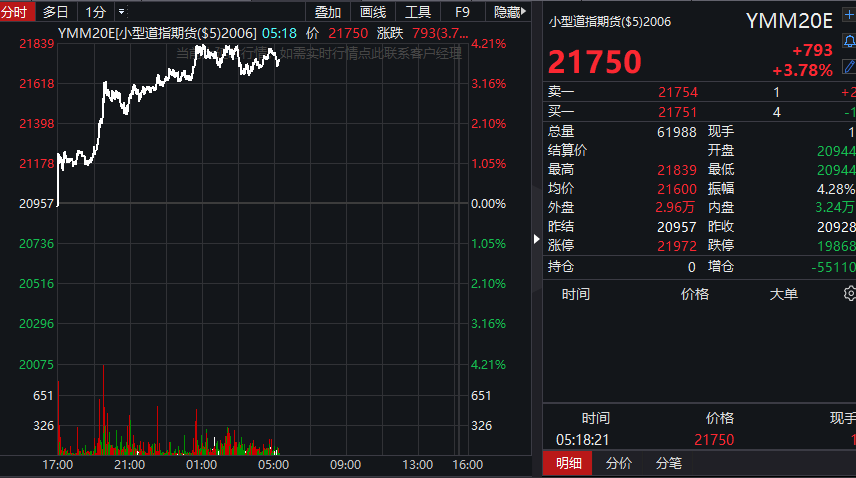 美股期货纷纷大涨,纳斯达克指数期货一度冲击5%的涨停,道琼斯指数期货也大涨近4%,涨幅不断扩大。