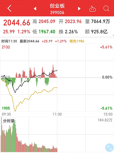 但随着科技和大金融板块开始反攻,A股开始反转。截至午间收盘,上证指数、深成指、创业板指均由绿盘翻红,各大指数分时图都呈现“V型”走势,其中创业板午间收涨超1%,盘中振幅近4%。无线耳机、光刻机、消费电子、芯片、苹果概念等科技题材成为反弹先锋,其中无线耳机指数反弹力度最大,盘中从跌超1%到午间收涨4.24%,位列题材涨幅榜第一位。