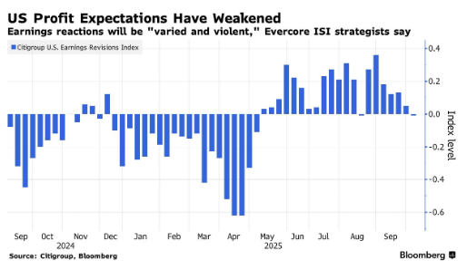 另一方面,摩根士丹利的策略师则认为,当前盈利预期调整广度的恶化,与10月通常较弱的季节性趋势相符。他们在报告中写道:“鉴于我们预计2026年企业盈利预期将进一步改善,我们认为当前的调整只是市场后续上行前的短暂停顿。”