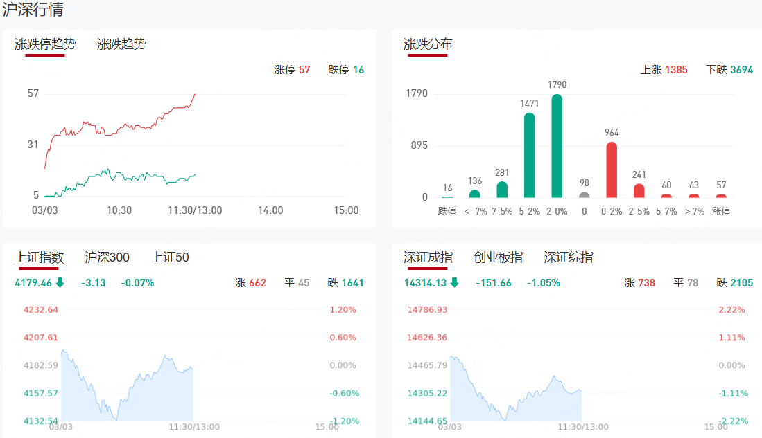 市场早盘探底回升,沪指盘中突破1月14日的阶段高点,为2015年7月2日以来新高。此前深成指一度跌超2%,沪指、创业板指一度跌超1%。沪深两市半日成交额超2万亿,较上个交易日缩量556亿。全市场超3800只个股下跌。从板块来看,油气股持续爆发,二十余只成分股涨停,洲际油气6天4板,水发燃气3连板,中国石油、中国海油、山东墨龙、准油股份、海油工程、海油发展2连板,洪通燃气、国新能源等多股涨停。港口航运概念延续强势,中远海能2连板,招商南油、宁波海运涨停。银行板块走强,重庆银行涨超7%。下跌方面,军工板块盘中震荡调整,无人机、军工信息化方向领跌,航亚科技跌超10%。