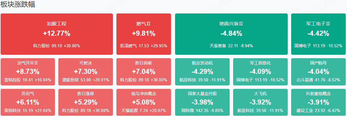 【2连板】洲际油气、中国石油、招商南油、山东墨龙、中远海能、石化油服、准油股份、中海油服、泰山石油、金牛化工、通源石油、华如科技、中油工程、中曼石油、海油发展、海油工程、金瑞矿业、博迈科、贝肯能源、蓝焰控股、惠博普、潜能恒信、