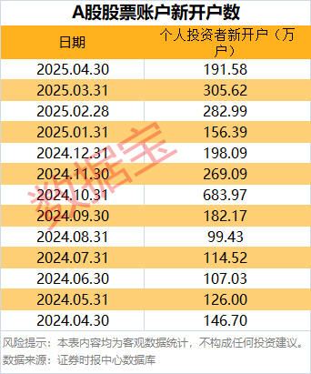 前4个月,个人投资者A股股票账户累计新开户数为936.58万户,截至2025年4月30日,个人投资者A股累计总账户数为3.78亿户。
