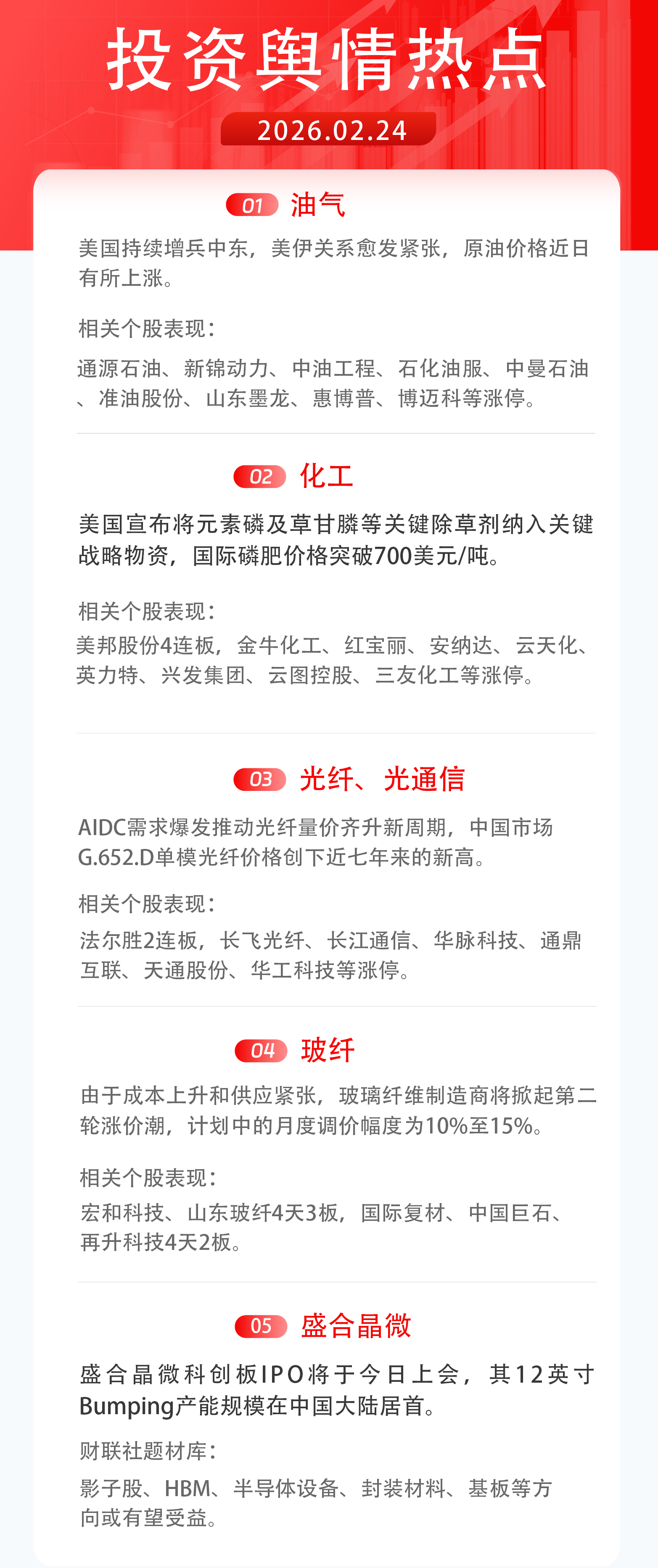 2月24日舆情热点:油气、化工、光纤