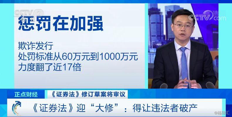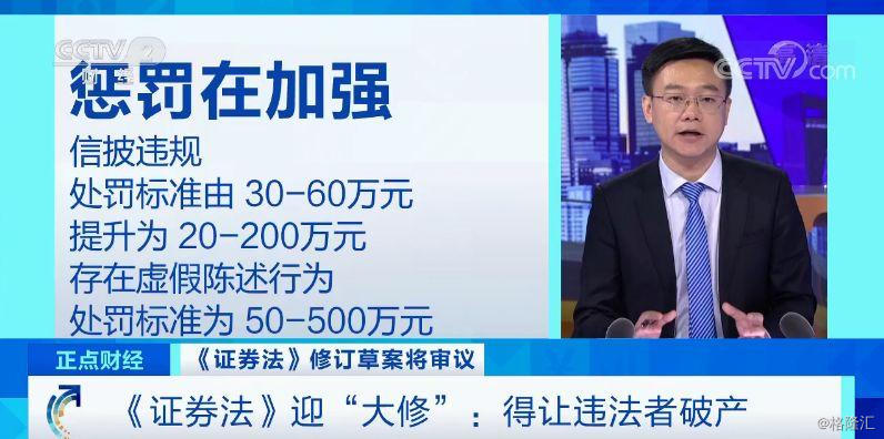 而修订草案修改为:发行人不符合发行条件,以欺骗手段骗取发行核准、注册,尚未发行证券的,处以100万元以上1000万元以下的罚款;已经发行证券的,处以非法所募资金金额百分之二以上百分之十以下的罚款。顶格处罚从60万元,到1000万元,处罚力度翻了近17倍。又比如,关于信披违规,现行处罚标准是30-60万元,新版修改为,未按规定进行信披处罚标准为20-200万元,而信披中有虚假陈述行为的,处罚标准为50-500万元。