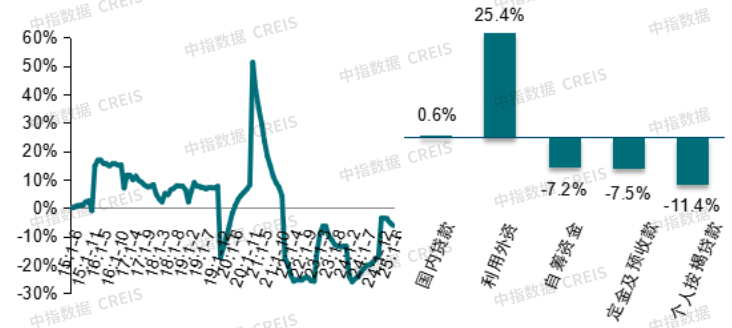 图:房企到位资金同比增速及各项资金来源同比增速对比