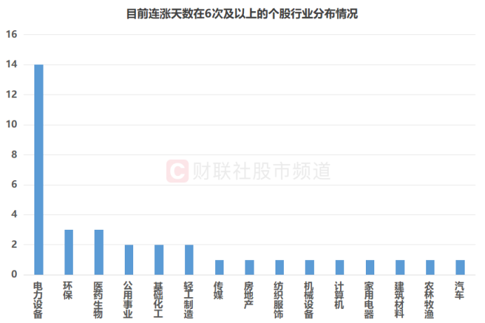注:目前连涨天数在6次及以上的个股行业分布情况(截至3月12日收盘)