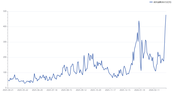 受英国关税取消及中东局势催生的能源替代逻辑影响,风电板块近期持续走强,截至今日收盘,其板块指数近8个交易日均实现上涨,累计涨幅达16.3%,且创2022年8月以来近三年半新高。从量能数据上看,风电板块今日全天成交总额达477.42亿元,创历史新高,并较昨日(393.26亿元)继续放量,成交额增幅近31.4%。