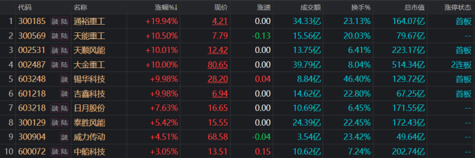 板块指数8连涨!人气龙头连涨9天 “风电热”持续发酵 这些方向也密集连涨