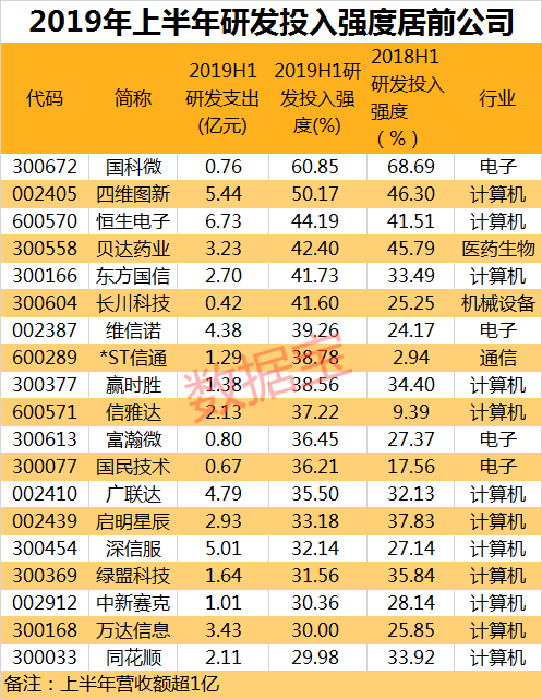 中报披露已收官,上市公司研发投入情况密集曝光,A股市场的研发支出如何,又有多少家公司研发投入强度超华为?