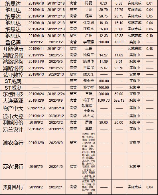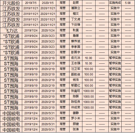 “金融1号院”发现,这些个股的高管增持计划截至日期最晚为2020年6月末,部分个股高管已经完成增持。值得的是, ST围海的高管增持计划暂停实施,投资者须注意。