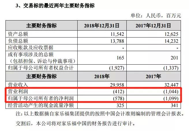 最新数据显示,家乐福中国的账面净资产却为负:报告显示,2018年家乐福中国营业利润亏4.12亿元,净利润则亏5.78亿元。