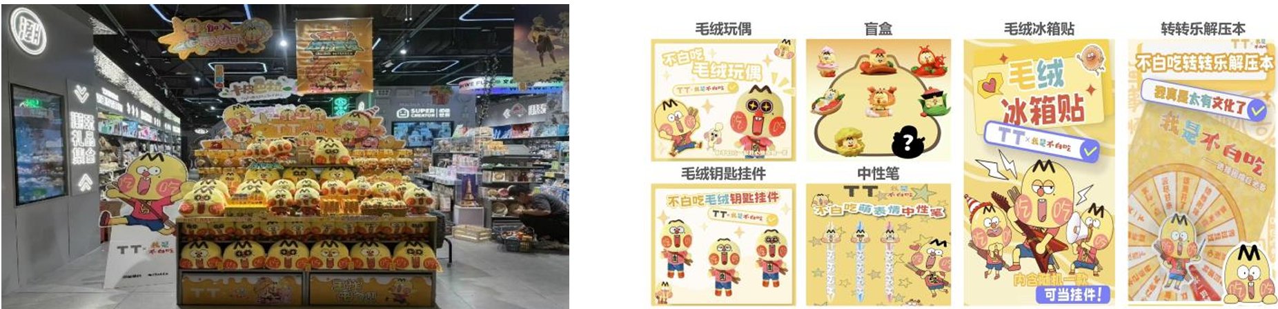 图:“我是不白吃”衍生品线下首发柜台 图:TT x “我是不白吃”联名衍生品 |