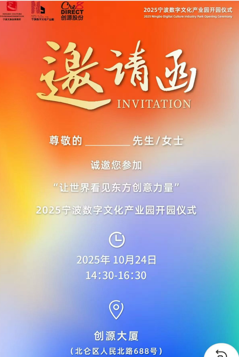 图:创源股份数字文化产业园开园邀请函(10.24) |