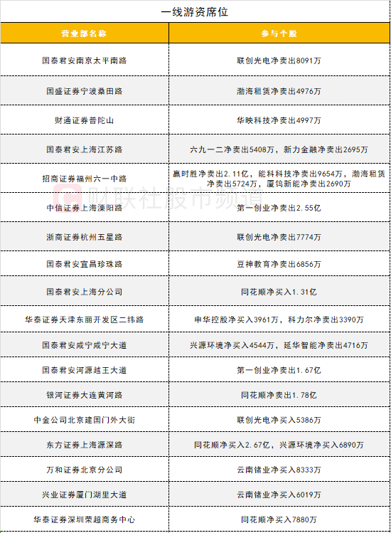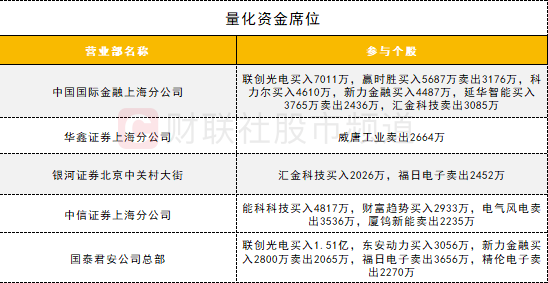 量化资金活跃度较高,联创光电获两家量化席位买入,其中国泰君安公司总部营业部买入1.51亿。