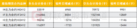 ①IH、IF期指主力合约空头加仓超9000手,加仓数量明显大于多头,此外IC、IM合约多头均大幅减仓。