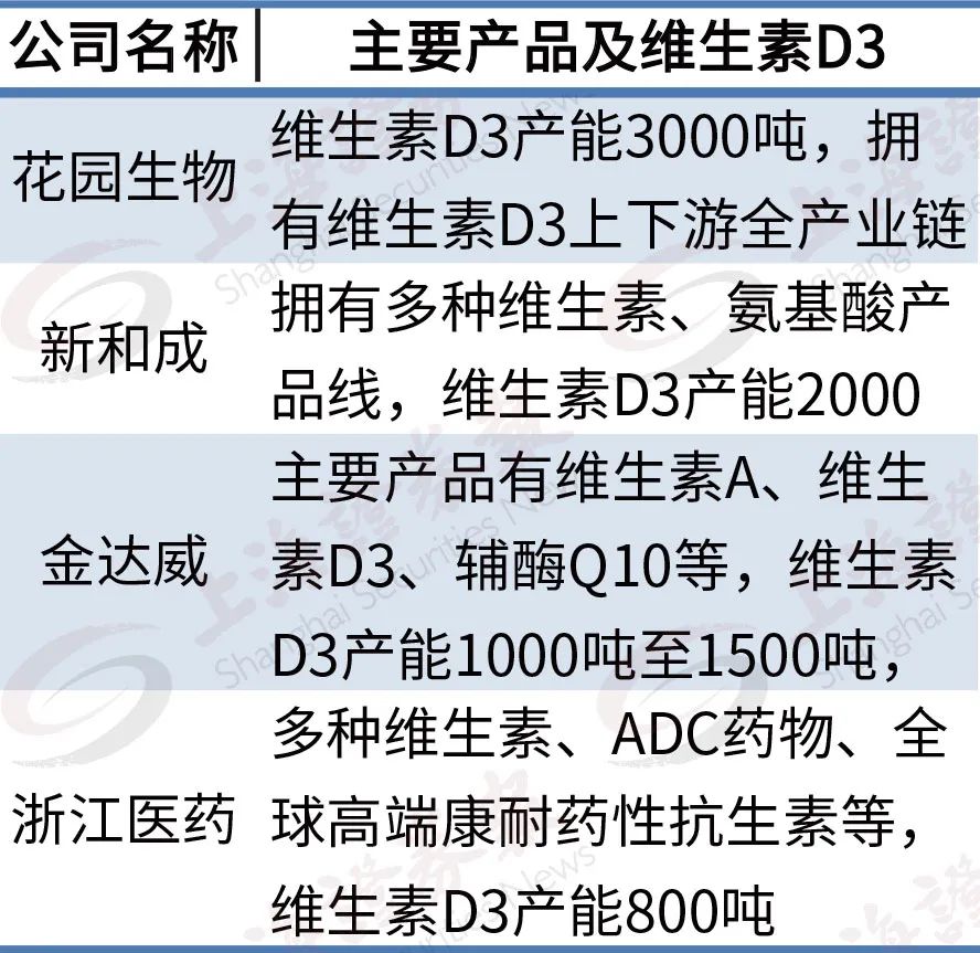 根据公开资料,小编整理了国内生产维生素D3的主要上市公司及其产能: