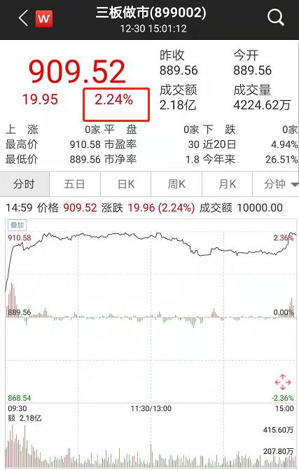12月30日开盘,新三板市场表现亮眼,截至收盘,新三板做市指数大涨2.24%,多只个股全线大涨。