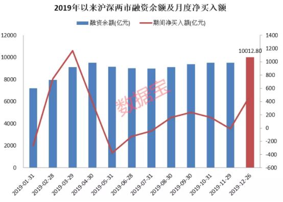 沪深两市融资余额自去年3月26日跌破万亿之后,时隔21个月后再次重回万亿大关。交易所最新公布数据显示,截至12月26日,融资余额达到10012.8亿元,年内融资净买入2523亿元。