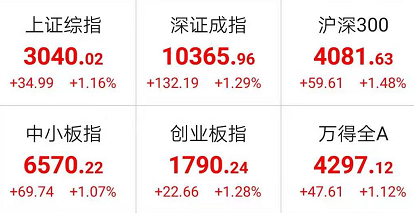 上证综指早盘低开,指数最低触及2983.84,跌幅超1.2%。午后收盘,指数强势翻红,沪指报收3040.02,涨幅1.16%;创半年内新高。