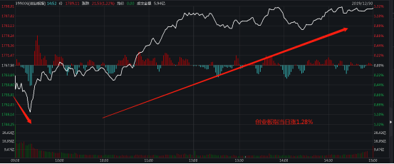 12月30日,两市三大指数小幅低开,大盘指数反复震荡并一度失守3000点。午后,指数迅速翻红,并开始强势上攻之路。截至当日收盘,沪指涨幅1.16%,深证成指涨1.29%,创业板指涨1.28%。
