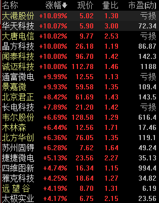 11月27日,科技股延续昨日反弹,芯片概念涨势强劲,截至收盘,大港股份、华天科技、大唐电信、晶方科技、闻泰科技、诚迈科技等涨停,北京君正大涨逾8%,长电科技、韦尔股份、木林森等多股纷纷跟涨。芯片作为自主可控、国产替代的核心环节,和5G、消费电子有望在未来持续表现。