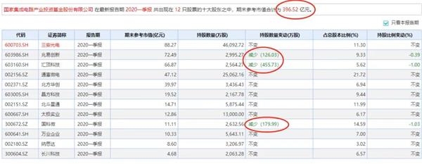 截至一季度末,大基金现身三安光电、兆易创新、汇顶科技、通富微电、北方华创等12只股票前十大股东中,持股市值396.52亿元。