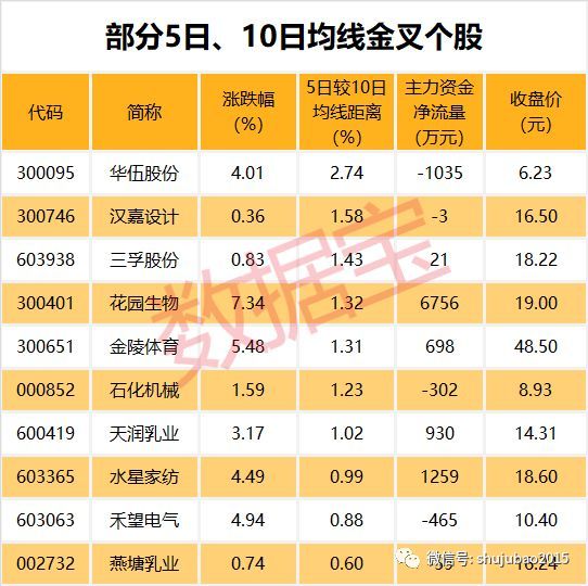 华伍股份等股短期均线现金叉