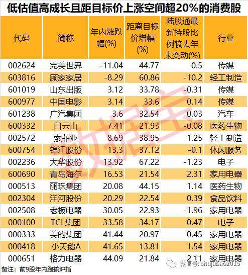 四成大消费概念年内大涨 9只滞涨股上涨空间超20%