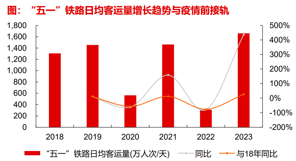银河证券指出,受2020年起的疫情影响,我国铁路旅客发送量大幅降低,铁路固定资产投资持续下滑,铁路装备投资低迷。2019-2022年,我国高铁实际招标采购量为457.5组,其中2021年和2022年仅分别采购29.5和87组,动车组数量存在较大缺口。五一高铁客运恢复超预期,部分线路高铁一票难求,上海虹桥站甚至出现全部车次售罄。