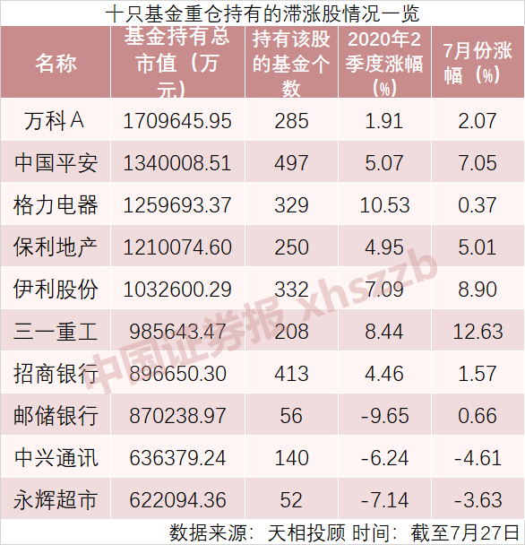 公募基金二季报提供了一个选股思路:前50大重仓股中有10只个股二季度涨幅未超11%,妥妥的属于滞涨股。