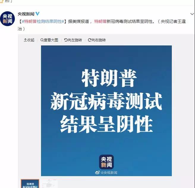 据CNBC报道,白宫医生称, 特朗普新冠病毒测试结果呈阴性。当地时间3月14号,美国总统特朗普在白宫召开新闻发布会。特朗普介绍,病毒检测是在周五(13日)晚间进行的。
