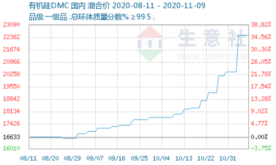 有机硅的价格在今年上半年持续触底,8月份开始出现反弹,10月底终于开始大幅度上涨。