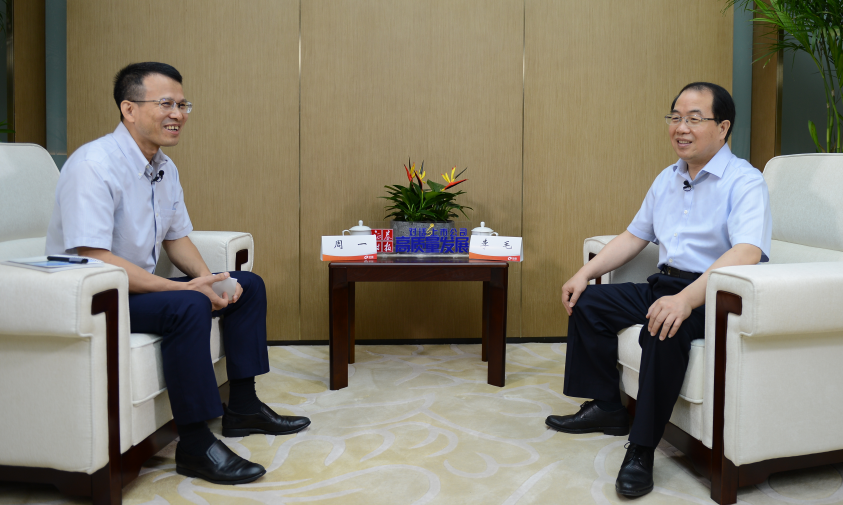 采访:证券时报常务副总编辑周一(左)