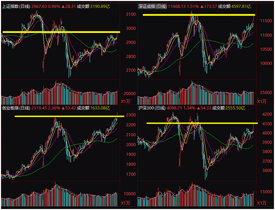 实际上,在连续过关斩将后,近期A股市场悄然来到了一个新的抉择关口,各大指数均已临近前期高点,多个指数距离年内前期高点仅一步之遥,中小板指创业板指表现相对更为强劲,而创业板指则率先突破。