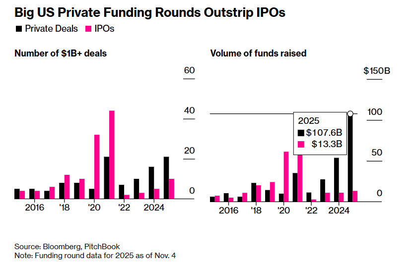 私募晋升AI独角兽们最强“输血泵”! 美股IPO规模遭巨额私募融资碾压