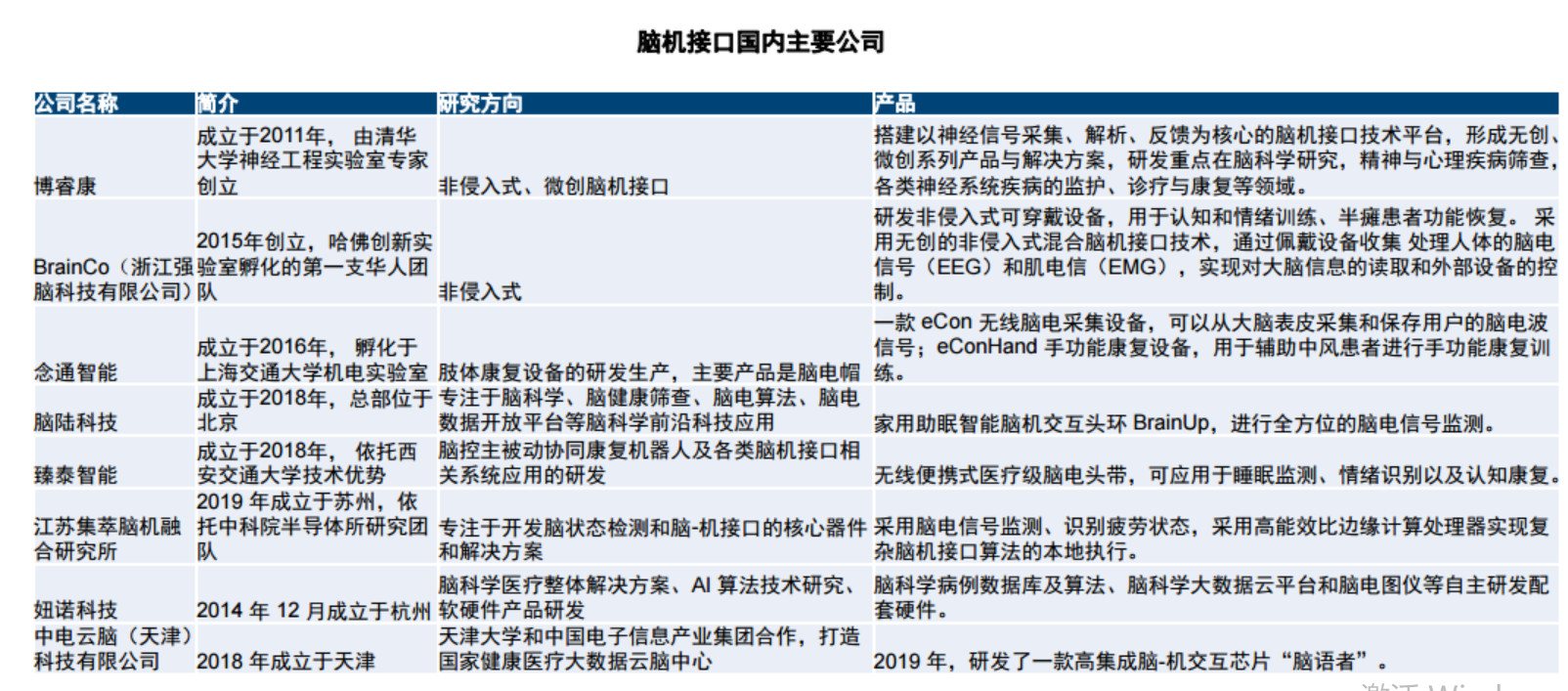 A股上市公司中创新医疗、世纪华通、浙大网新、汤姆猫、科大讯飞等通过参股或前瞻研发布局。其中,新智认知在互动平台上表示,同属于实际控制人旗下“上海新氦类脑智能科技有限公司”是上海市类脑芯片与片上智能系统研发与转化功能型平台的承载主体。创新医疗此前出资设立“脑机接口”项目公司,持股40%。