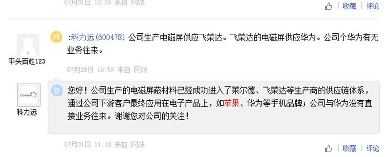 科力远披露,公司的电磁屏蔽材料进入了飞荣达等的供应链体系,最终应用于苹果、华为等手机品牌。