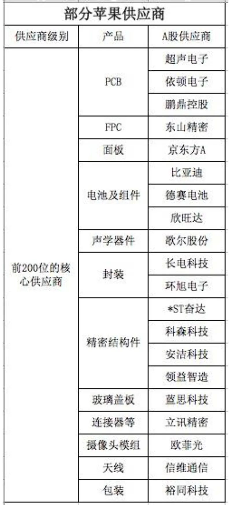 根据苹果今年3月份发布的2019年核心供应商名册,约有22家A股、H股的苹果产业链公司进入名册。
