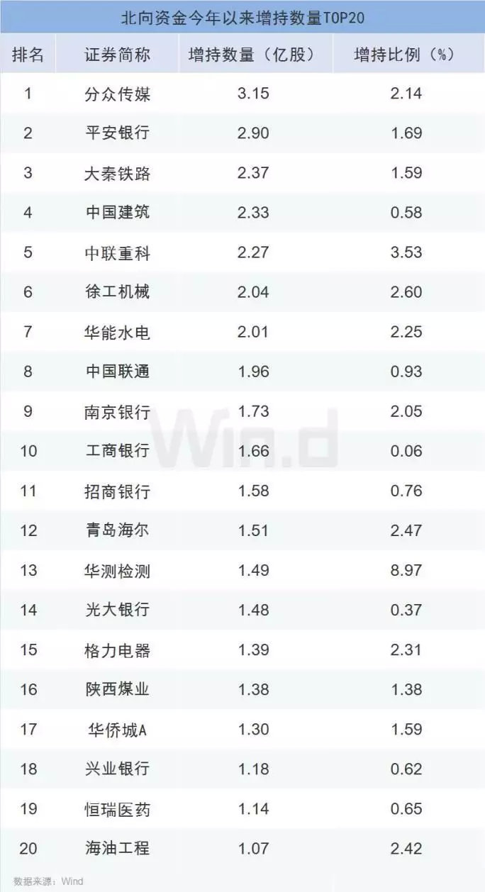 上半年哪些个股是北向资金真爱?