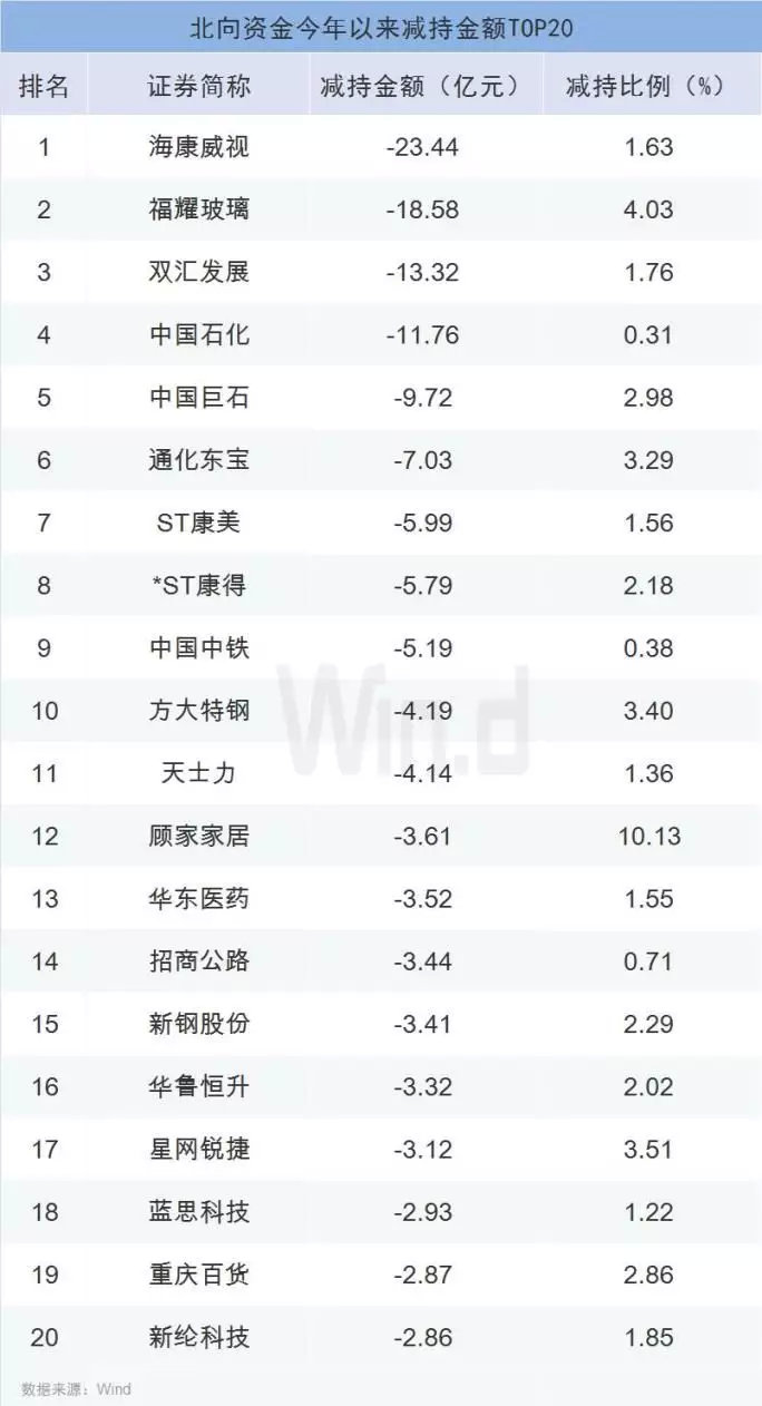 从减持金额来看,今年走出倒V行情的安防龙头股海康威视遭北向资金大举抛售逾23亿元,福耀玻璃、双汇发展、中国石化减持金额均超10亿元。总的来看,今年以来个股减持金额普遍不高,远低于增持金额,与北向资金的总体净流入态势相契合。