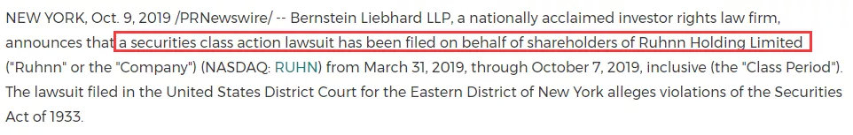这也是Bernstein Liebhard LLP起诉如涵控股的第二个原因。