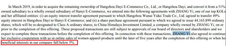 根据如涵控股的招股说明书显示,只要张大奕套现,导致持股低于5%,那么就可以和如涵解约,出来单干。