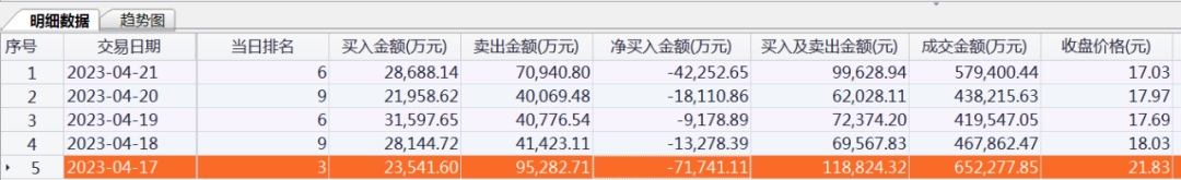 以成交均价和加仓股数来计算,中远海控为本周北向资金增持金额最大的股票。本周北向资金增持中远海控1.19亿股,加仓金额达13.71亿元。从明细数据来看,本周北向资金连续5个交易日加仓中远海控,其中4月17日加仓超4亿元。